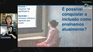 Outro ponto enfatizado pela palestrante foi a necessidade de compreender a inclusão como uma ação coletiva: “Educação inclusiva não é tarefa de um único professor; deve ser um projeto coletivo. Dividir responsabilidades ajuda na inclusão dos alunos na sala de aula.” Além disso, a professora ainda destacou o papel essencial da acessibilidade como condição para a equidade educacional: “A acessibilidade permite que todos tenham acesso às informações e se comuniquem, equiparando oportunidades.”