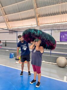 Durante o evento, os participantes vivenciaram diversas práticas adaptadas, como aquecimento físico, corrida/deslocamento com obstáculos e dança com instrumentos musicais, todas pensadas para possibilitar a participação de todos, de acordo com suas potencialidades e ritmos. O Educador Físico Inclusivo do NAU, Phelipe Amorim, destacou que “o movimento é indispensável na vida de todas as pessoas, independentemente de suas condições. Atividades assim ampliam autonomia, autoconfiança e interação social.”